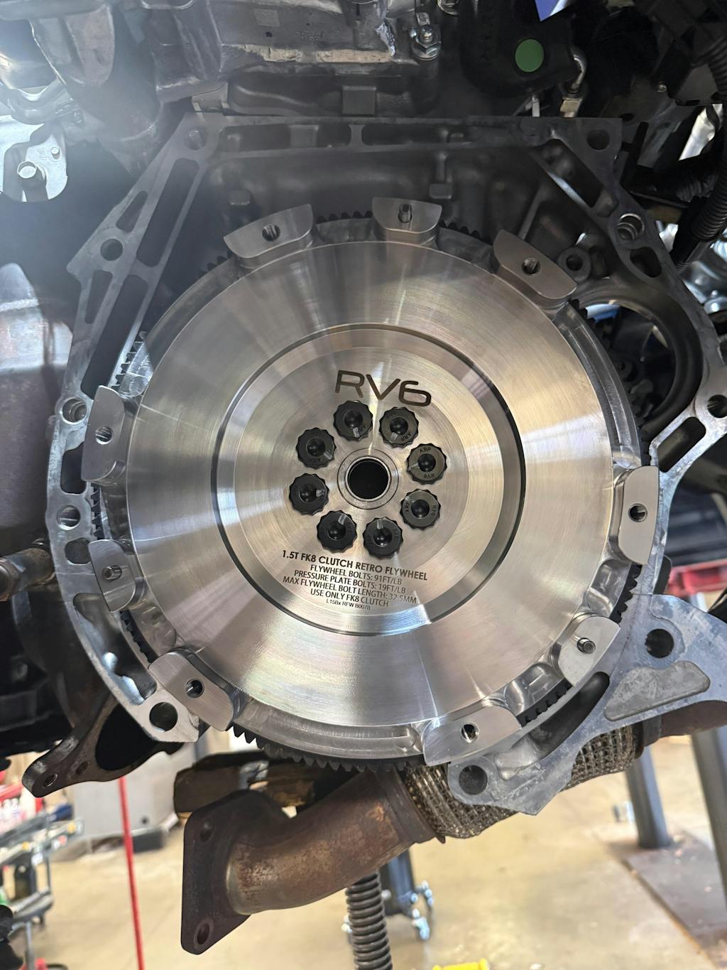 Is it lightweight? RV6 1.5T FK8 Clutch Retro Flywheel 42% lighter than stock. (Actual weight 20.5lbs) We could have gone lighter however the issue with running a flywheel that is too light is that your will trip the misfire detection within ECU and throw an error code never allowing you to pass inspection. Light weight flywheels are also easier to stall and harder to launch. They also make the engine run rough at lower RPMs due to the lack of inertia. The main goal of this setup is to hold power without sacrificing comfort or drivability.